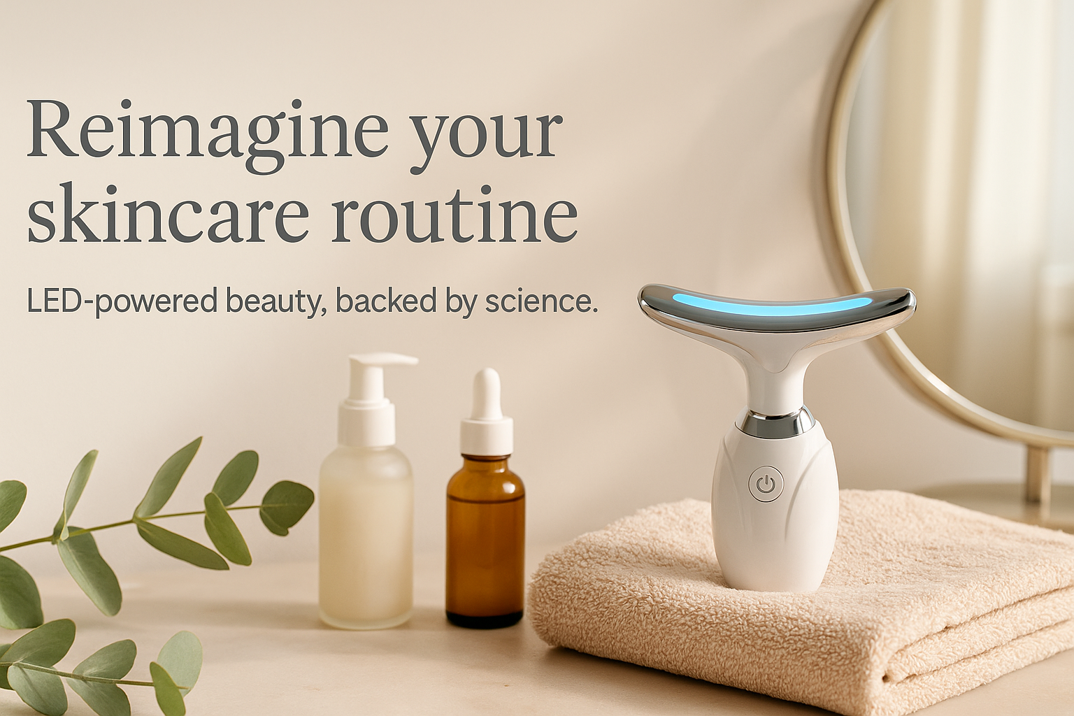 This compact device combines LED light and gentle vibration massage to support skin’s natural elasticity and create a more refreshed, rejuvenated appearance — all from the comfort of home.
